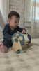 Three noisemaking knobs, graphic abacus blocks & an acrylic mirror spark curiosity and fine-motor growth.